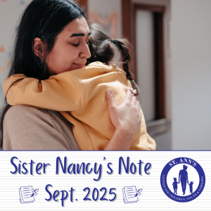 The families who come to St. Ann’s have faced real challenges in their young lives. These experiences can be overwhelming and isolating. Thankfully, you make St. Ann’s a place where – over time, with love and support – that sense of isolation can begin to dissipate, freeing women and their children to forge new relationships that add hopeful dimensions to their lives.Sister Nancy's Note: Your Help = Hope for Families Overcoming Crisis