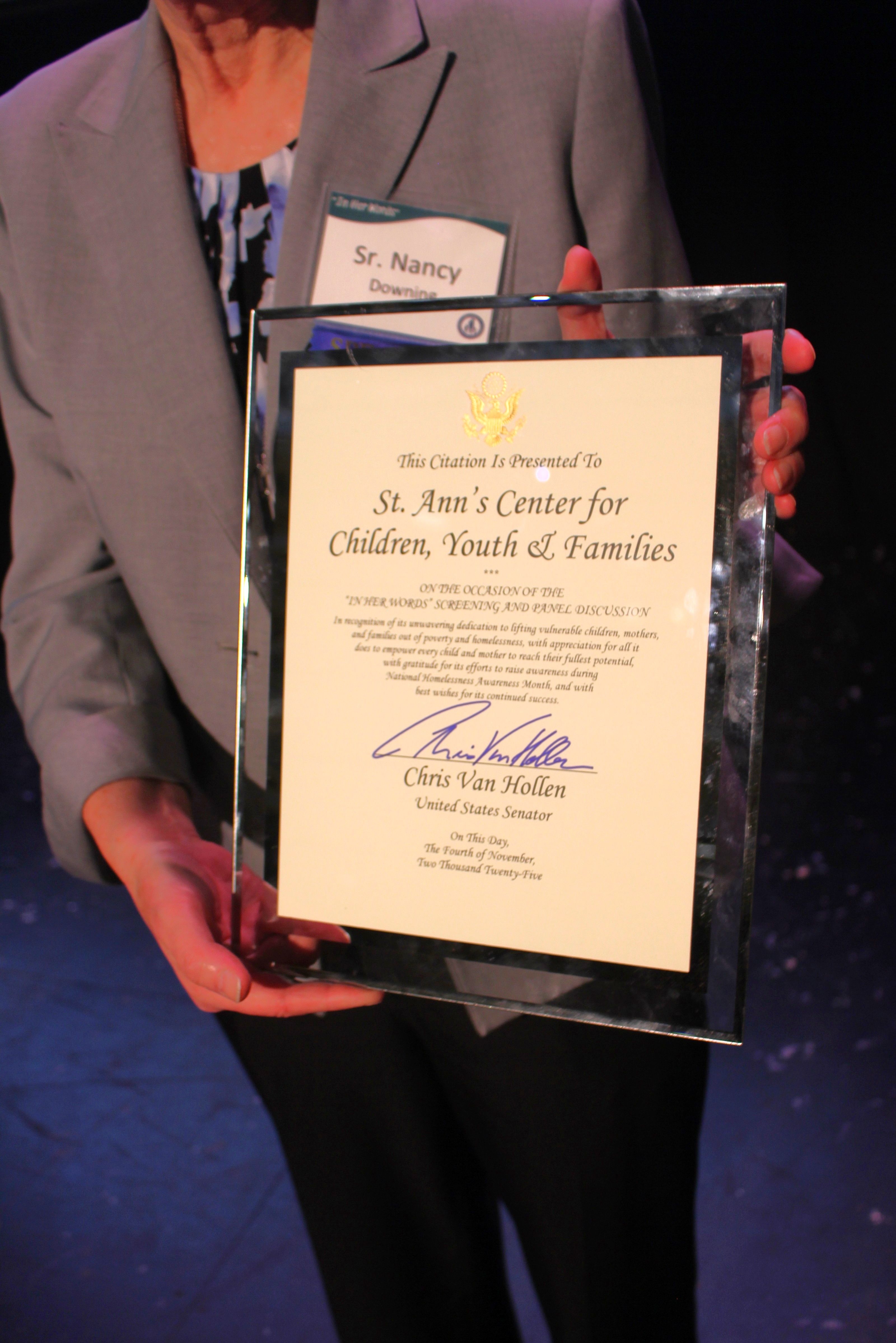 - To Senator Chris Van Hollen, for marking the occasion with a Congressional Citation to St. Ann's Center.