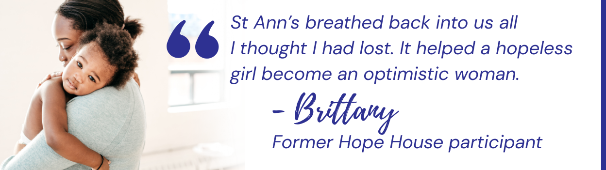 Your generous support, in her honor, will help other young women like Alicia, Brittany, and Mary find strength and support through St. Ann’s Center as they build hope-filled futures with their children.